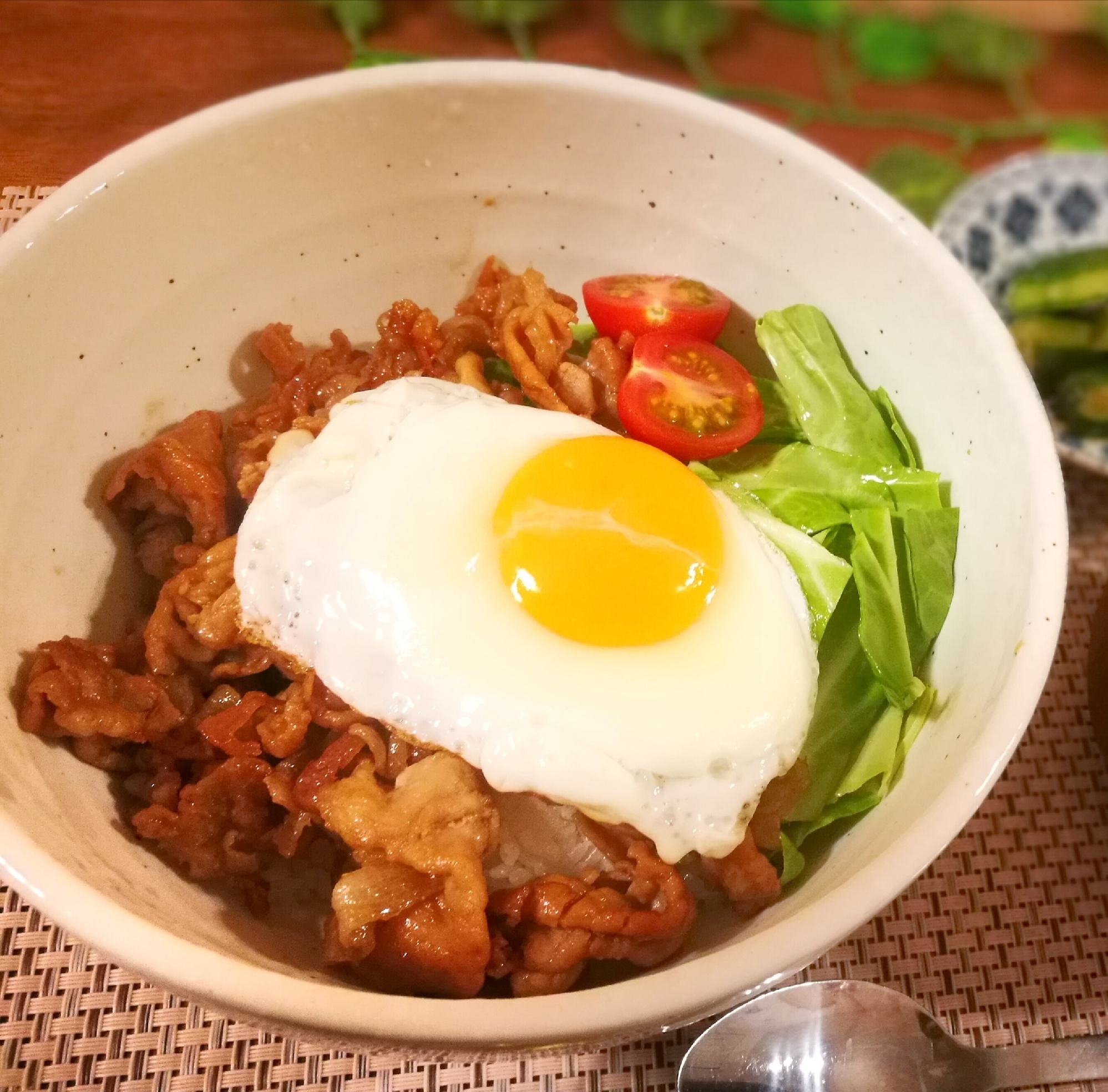 孤独のグルメの しょうが焼き目玉焼き丼 を真似てみた こんなことしてません